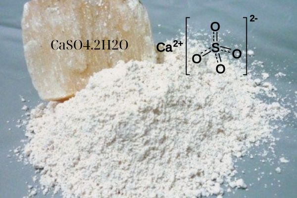 Thành phần hóa học của thạch cao sống là muối canxi sunfat CASO4.2H20, chúng tồn tại ở tinh thể bột và tinh thể hạt. Nếu như đem nung ở nhiệt độ ~150°C tạo thành thạch cao khan, khi nghiền và trộn với nước tạo thành hỗn hợp vữa thạch cao.